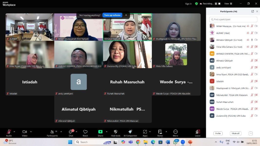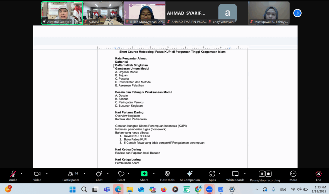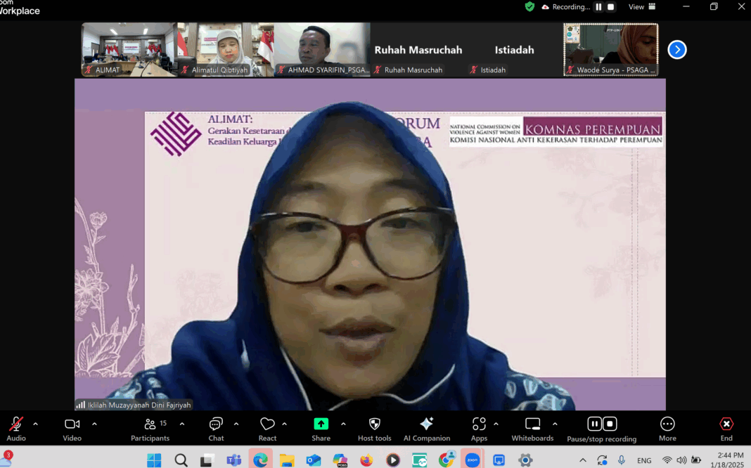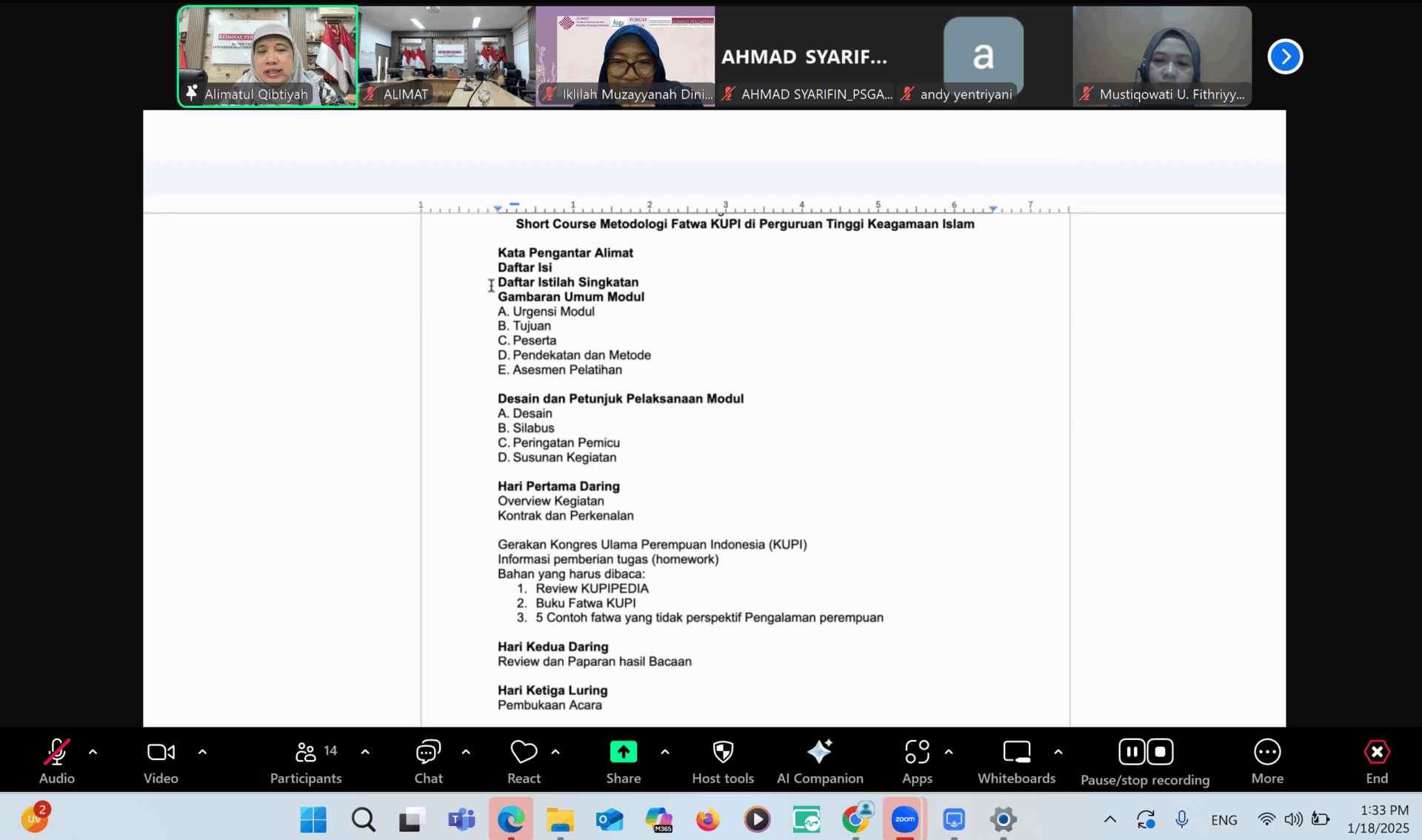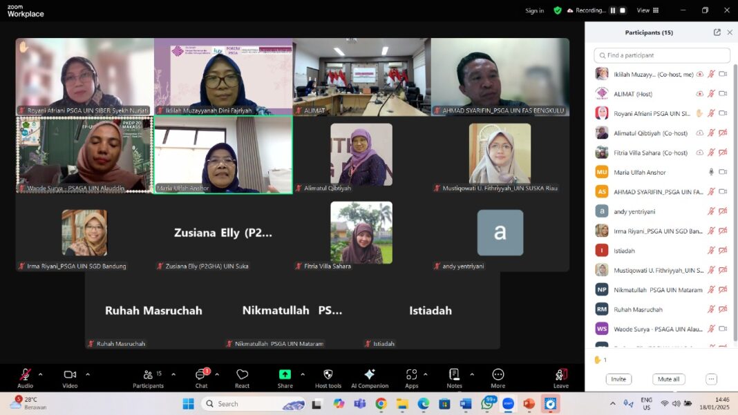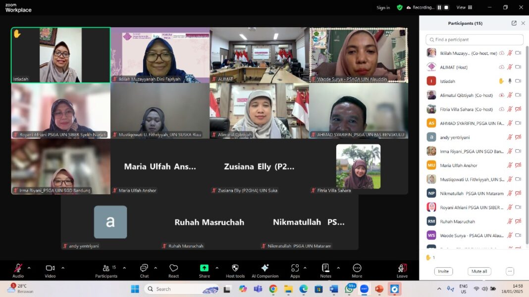 FGD Online Tim Modul Short Course, KP dan PSGA, 18 Januari 2025 Galeri Kegiatan 19 Januari 2025 By alimator Less than 1 min. read FGD Online Tim Modul Short Course, KP dan PSGA, 18 Januari 2025 Lainnya FGD Online, Konsolidasi Tim Modul Short Course Alimat – Forum PSGA, 1 Juli 2025 Galeri Kegiatan 1 Juli 2025 Bulan Kebangkitan Ulama Perempuan Indonesia (BKUPI), 18 Mei 2025 Galeri Kegiatan 19 Mei 2025 Sosialisasi Fatwa KUPI tentang P2GP di UIN Sultan Syarif Kasim Riau Galeri Kegiatan 18 Mei 2025
